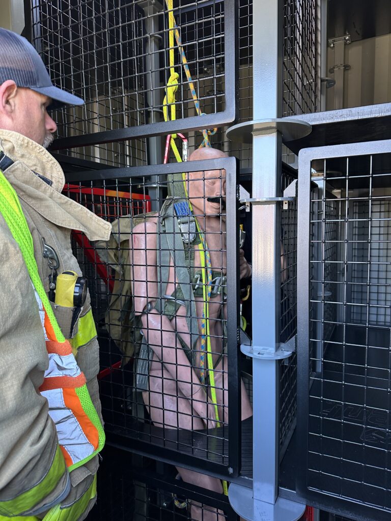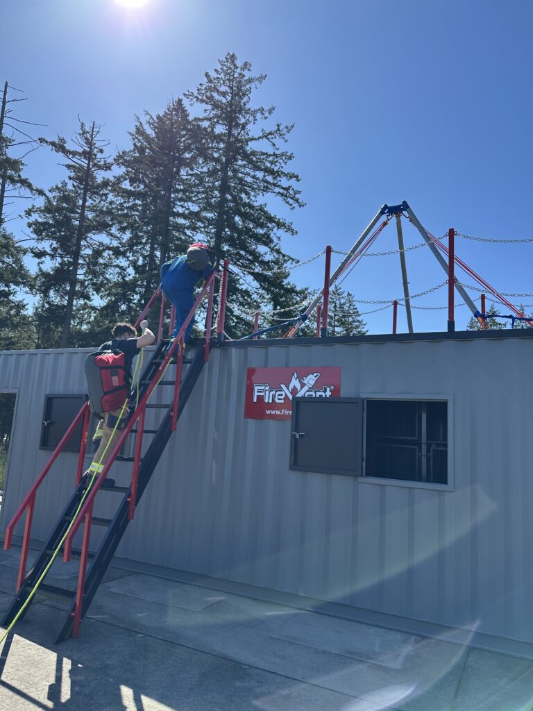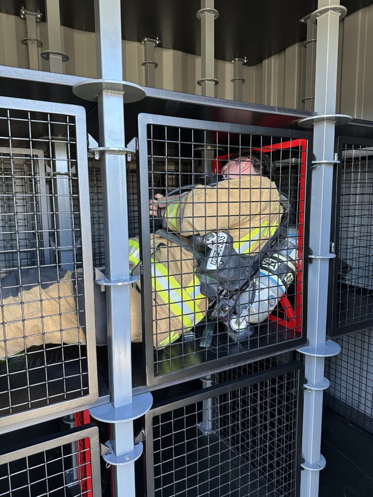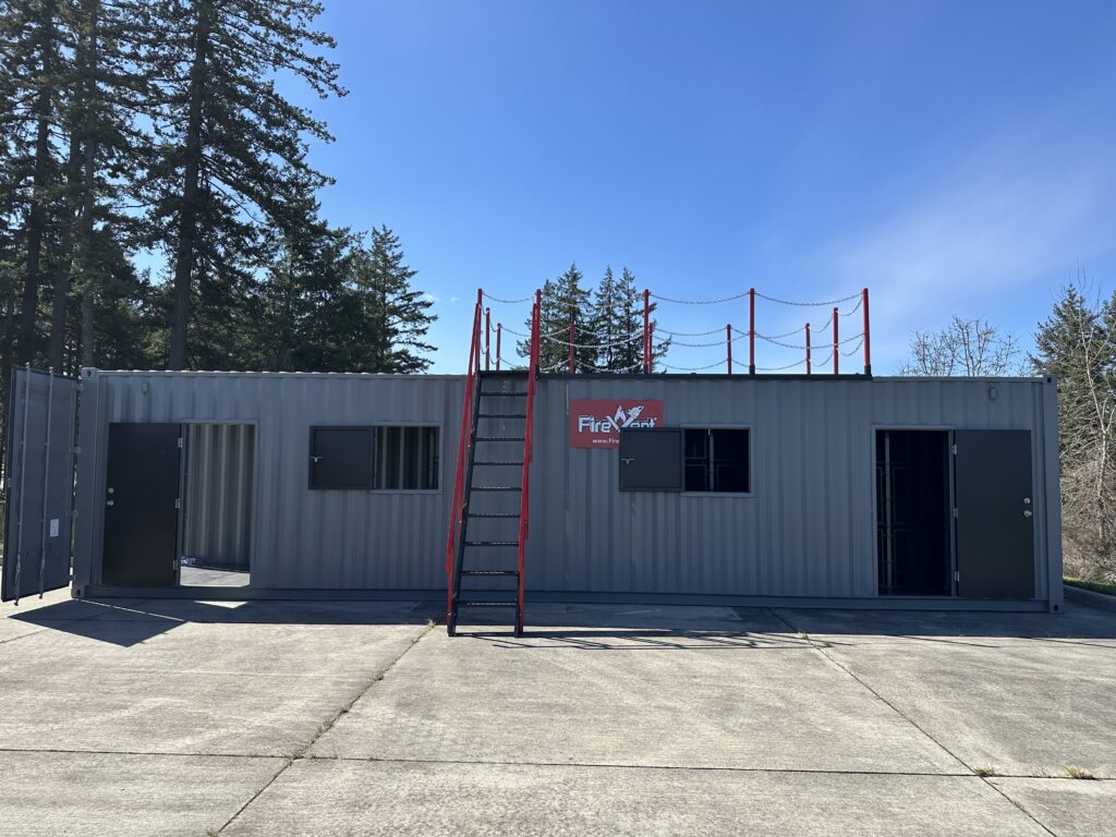 The FireVent SCBA Confidence & Confined Space Maze can be assembled on-site, in your own shipping container, (FireVent will come to you and do the installation) or fully assembled in a container at our facility, and shipped to you. The maze can also be assembled / installed in regular training structure. The unit shown is in a 40ft High Cube Shipping Container. The maze is 2 sections wide by 2 sections high and 10 sections long. The unit has the ability to expand to 3 sections high by obtaining additional “mesh” side panels. Also available is a 3 section wide by 3 section high and 6 section deep model. The removable floor panels are composite 1″ thick “outrigger pad” material and have a lifetime guarantee. There are 8 obstruction panels (red) and 6 pass through floor panels. This unit has a reinforced ceiling with a “high point” entry for confined space entry evolutions. In addition to the cargo doors at the end of the container, there are two man doors along with two 30″ windows