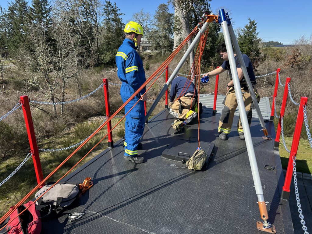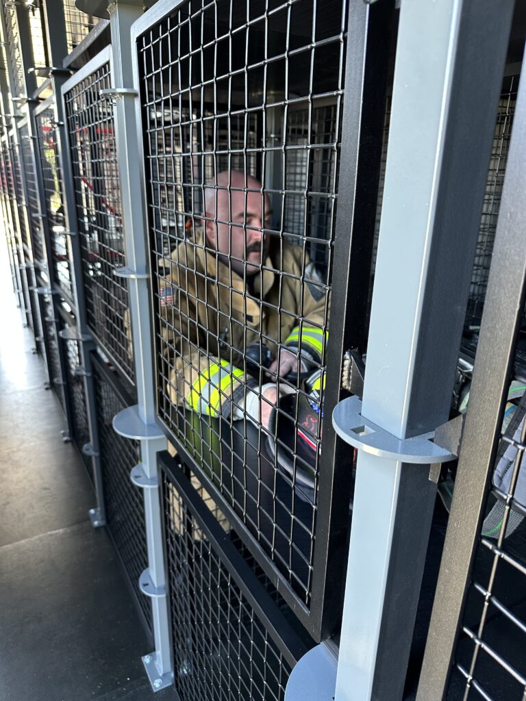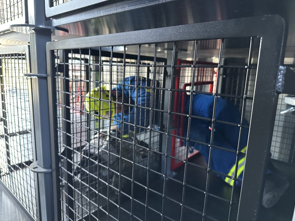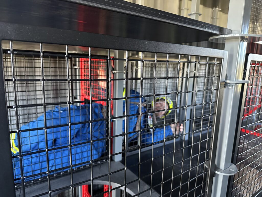 The FireVent SCBA Confidence & Confined Space Maze can be assembled on-site, in your own shipping container, (FireVent will come to you and do the installation) or fully assembled in a container at our facility, and shipped to you. The maze can also be assembled / installed in regular training structure. The unit shown is in a 40ft High Cube Shipping Container. The maze is 2 sections wide by 2 sections high and 10 sections long. The unit has the ability to expand to 3 sections high by obtaining additional “mesh” side panels. Also available is a 3 section wide by 3 section high and 6 section deep model. The removable floor panels are composite 1″ thick “outrigger pad” material and have a lifetime guarantee. There are 8 obstruction panels (red) and 6 pass through floor panels. This unit has a reinforced ceiling with a “high point” entry for confined space entry evolutions. In addition to the cargo doors at the end of the container, there are two man doors along with two 30″ windows